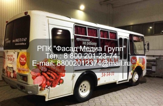 Реклама на бортах общественного транспорта широко востребована среди рекламодателей. Многие представители бизнеса выбирают данный формат из-за того, что такая реклама хорошо видна и охватывает большое число горожан. Реклама, размещаемая на бортах автобусов, троллейбусов, маршруток, воздействует не только на пассажиров, ожидающих транспорт на остановках. Данный формат рекламного объявления хорошо виден прохожим, а также водителям частных авто РПК «Фасад Медиа Групп» разместило рекламу нашего клиента на бортах городских автобусов. Целью заказчика является популяризация собственного бренда, а именно производства колбас